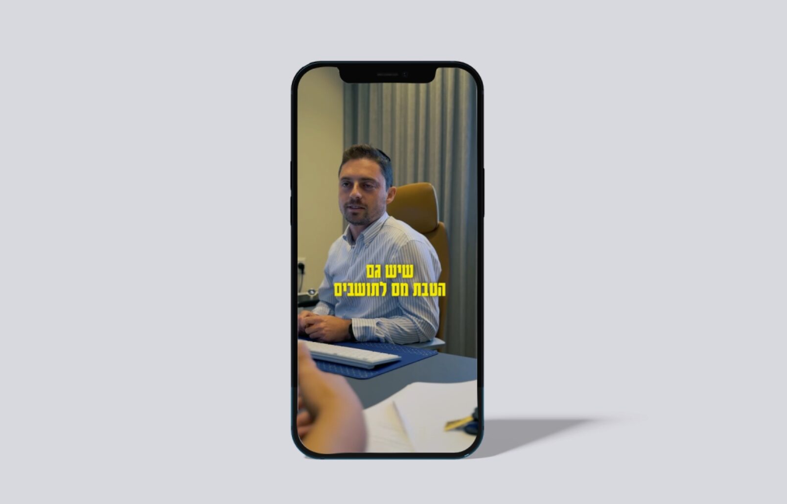 האתגר שאיתו התמודדנו היה בניית שפה מודולרית שיודעת לפנות גם לשוק הבינלאומי. לקחנו את יתרונות המותג ויצרנו שפה שמבטאת את הליווי בכל שלב – איתך בכל נקודה עם ייצוג ויזואלי חזק ומרשים שמעביר את המסר בצורה אייקונית וברורה. על מנת לפנות לתושבי חו"ל הצמדנו את הנרטיב הקריאייטיבי – Your Home In Israel